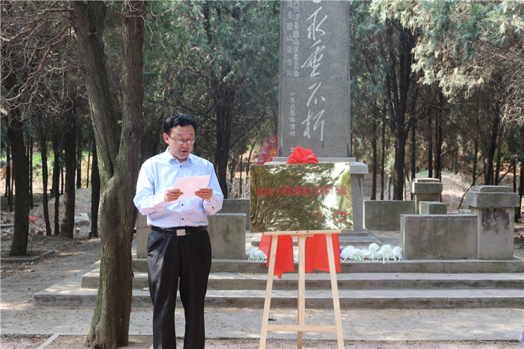 为贯彻落实习总书记系列讲话精神,积极培育和践行社会主义核心价值观,不断加强爱国主义教育,4月14日,山东女子学院在济南革命遗址“一门三英烈”纪念碑广场举行缅怀革命先烈暨爱国主义教育基地揭牌仪式。参加活动的有校党委副书记宿建沛,经济管理学院党总支书记缪文卿、副书记齐振花,校团委书记王鲁,济南市长清区崮云湖街道党工委副书记、办事处主任赵国,副书记、关工委主任孟刚,关工委常务主任井兴远、长清区关工委副秘书长刘洪玉,以及部分五老志愿者、部门负责人和学生代表。