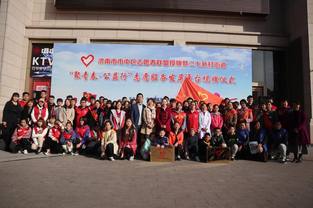 济南市志愿者联盟授旗暨二七新村街道“聚青春·公益行”志愿服务发展平台揭牌仪式标志着市中区志愿服务更加系统化,山东女子学院暖心向YOUNG志愿服务队在今后的实践工作中,也将会进一步加强校地纵深合作,搭建大学生社会实践重要平台,让我校学生将志愿服务落到实处,把志愿精神和公益意识体现在志愿服务活动中。