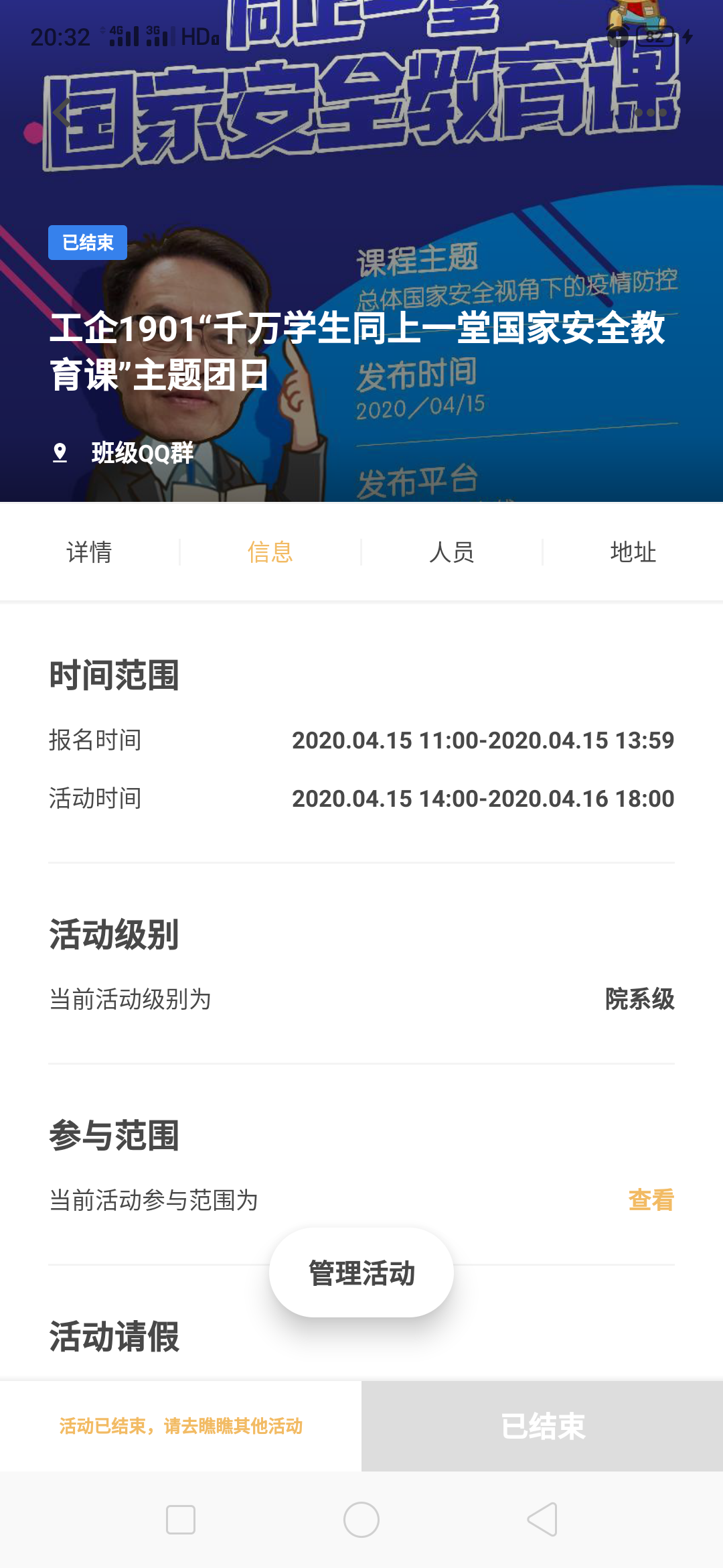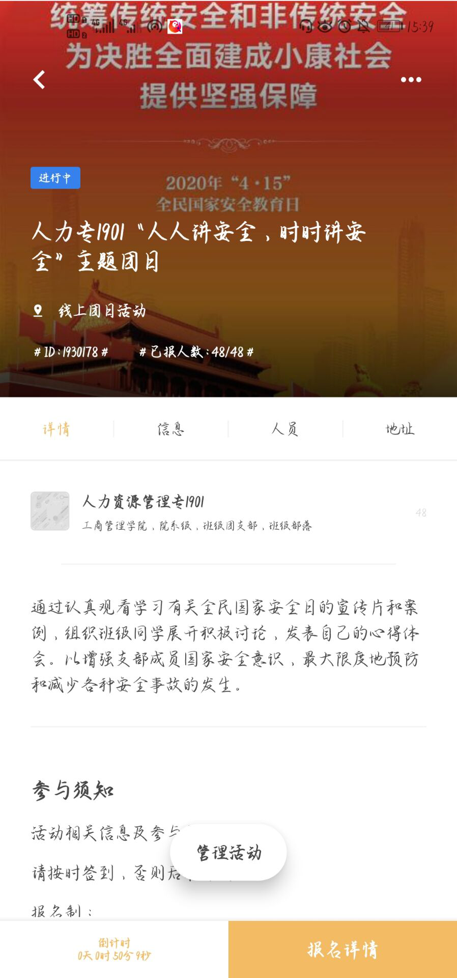 为迎接4月15日国家安全教育日,深入宣传以习近平同志为核心的党中央关于疫情防控工作的决策,积极响应教育厅要求深入开展“同上一堂国家安全教育课”号召,同时提高同学们国家安全法治意识。工商管理学院于2020年4月15日上午组织全院1675名学生观看由教育部发布的《总体国家安全观视角下的疫情防控》国家安全教育课。