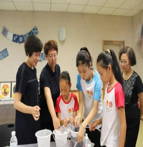 第三项领导老师与小学生体验非遗传统蜡染技艺,悠悠一抹靛蓝,渲染出学生清清雅雅的梦想,纯真烂漫。你我共携手传承非遗文化之悠远,礼赞中华技艺之经典!
