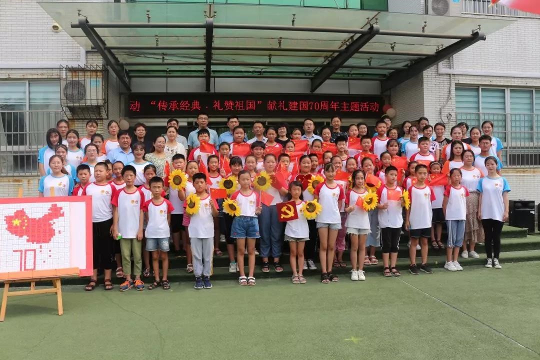 为隆重纪念中华人民共和国建国70周年,持续推进志愿服务常态化,加强“乡村振兴,人才扶智”,共青团市中区委联合山东女子学院开展“社团小课堂·童心大梦想”项目。催马小学、罗而小学、小庄小学的150名小学生与来自山东女子学院工商管理学院和教育学院的45名大学生们一起相聚在催马小学,开展“传承经典·礼赞祖国” 献礼建国70周年主题活动,共同为祖国送上祝福。市中区委组织部副部长、远程教育中心主任刘柏、市中区党家街道党工委书记王德东、市中区教体局党组书记、局长宫春、市中区党家街道办事处主任于飞、市中区委书记齐巍岩、共青团市中区委副书记田霖、市中区党家街道党工委副书记、总工会主席亓荣永、市中区党家学区教育办主任王静以及山东女子学院工商管理学院党总支书记田莉春、教育学院党总支书记李君、山东女子学院团委副书记苏婧,参加此次活动。