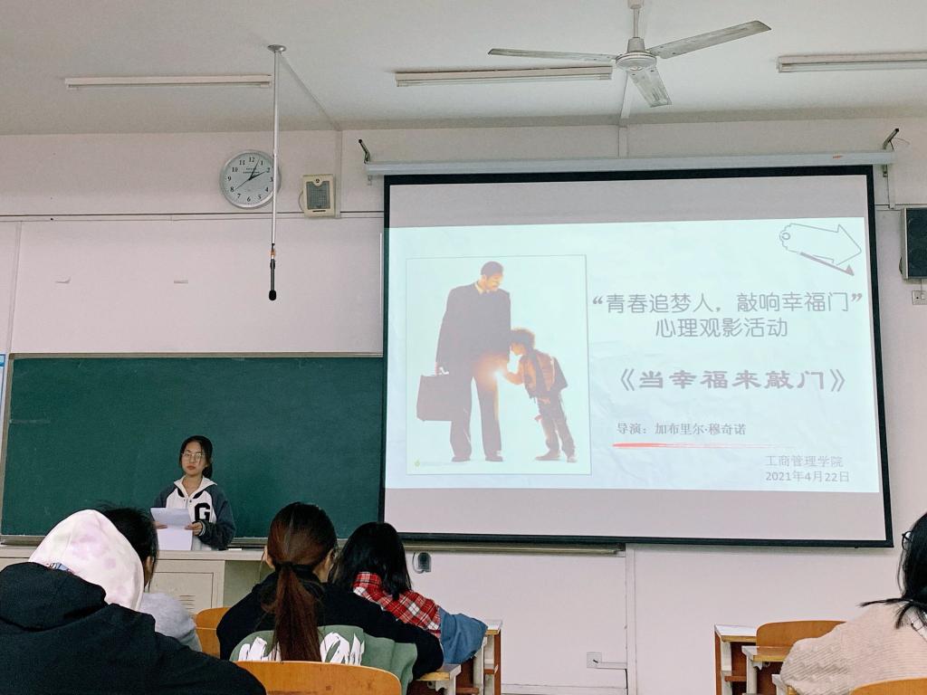 为激励当代大学生勇敢追梦,以积极的心态面对生活中遇到的种种困境,感受追梦途中奋力拼搏和坚持不懈所带来的力量与希望,工商管理学院心灵氧吧于2021年4月22日在博文楼201举办了心理观影活动。