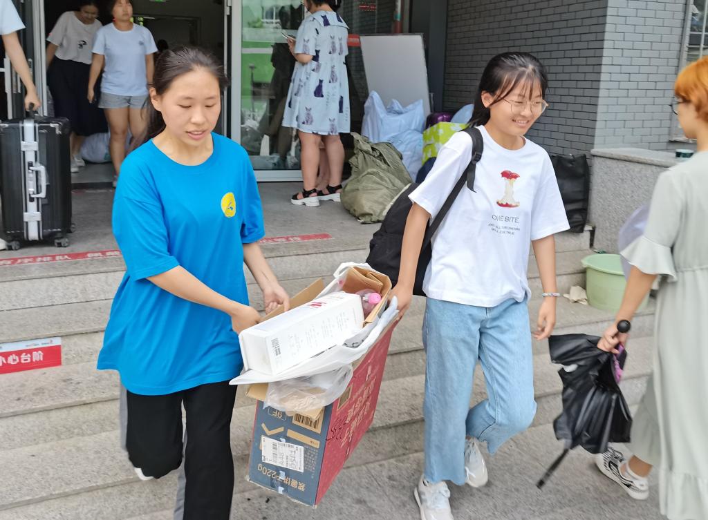 炎炎夏日,志愿者们为需要搬放行李的同学们提供无偿服务,每一位志愿者都认真负责地做好自己的工作,他们分工明确,相互配合,不怕苦、不怕累,尽心尽力地完成行李搬运工作。随着一个接一个的重物被搬走,直至需要帮助的同学不见一人时,青年志愿者们才停止了匆忙的脚步。