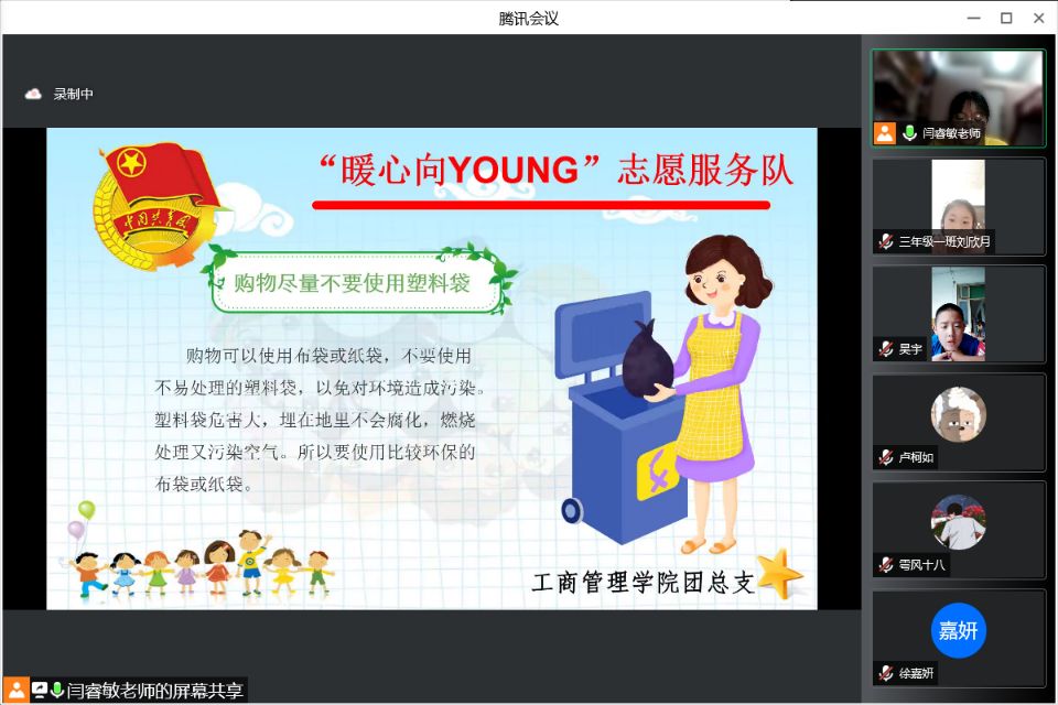 志愿者带领同学们来到环保课堂上,走进课本里,联系生活实际来强调垃圾分类错误带来的生活和环境污染问题,让同学们认识到垃圾分类的重要性。使同学们通过网络课堂感受到实地生活的知识。同时,志愿者们也提醒同学们观察家庭中产生的生活垃圾,利用课堂知识,按照垃圾分类的要求分别投入到指定位置。同学们积极响应号召,将家庭生活垃圾分类投入到垃圾桶中。另外,在同一地区的同学也积极分成小组,深入社区进行捡垃圾和垃圾分类活动......同学们热情高涨,不仅对生态环境保护 和生活污染问题有了更深刻的认识,而且体验到了环保实践活动的乐趣。