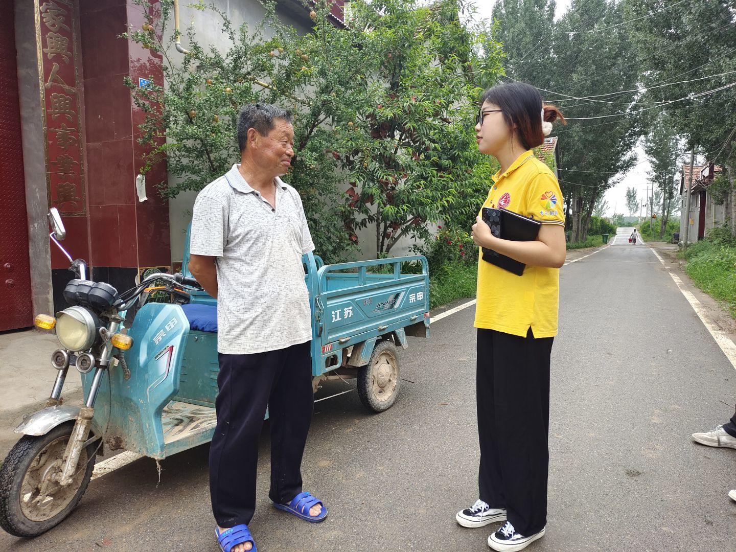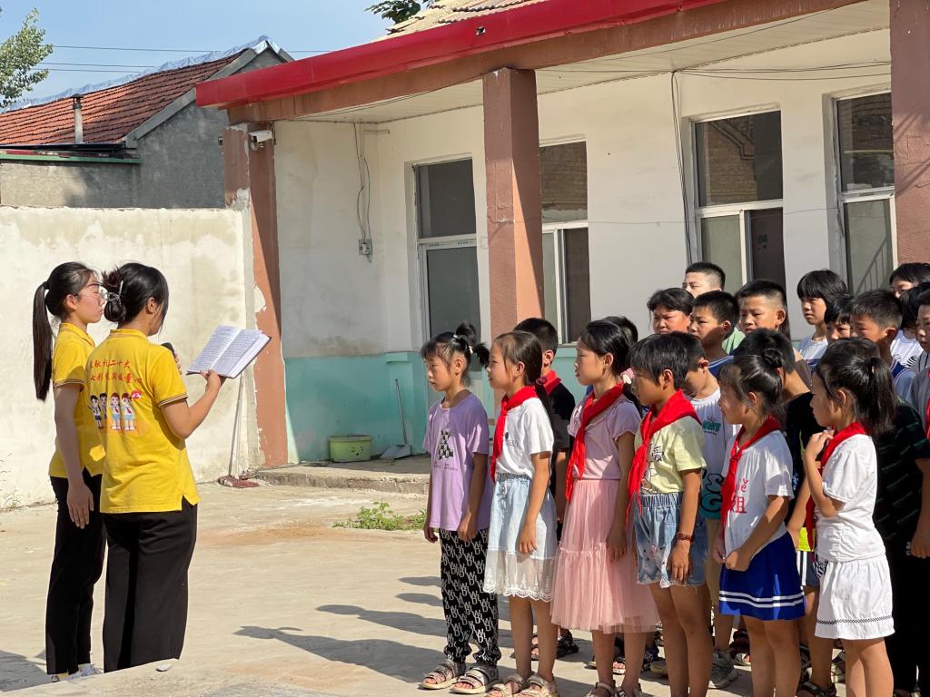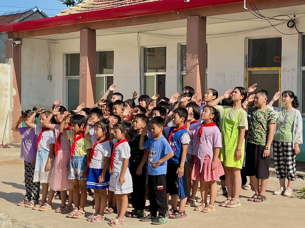 2022年7月18日,山东女子学院“暖心向YOUNG”志愿服务团队作为2022年“七彩假期”志愿服务示范团队,带领后冯村乡村振兴学堂的学生们在村委开展升旗仪式,并开展“七彩假期 暖心家访”活动。