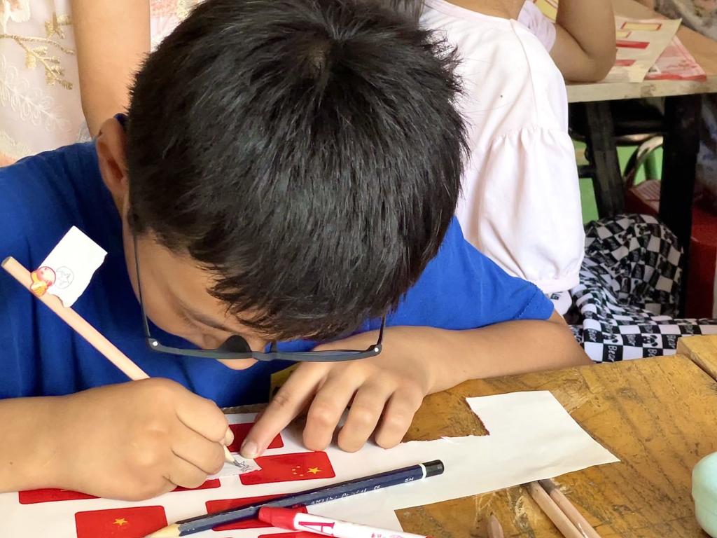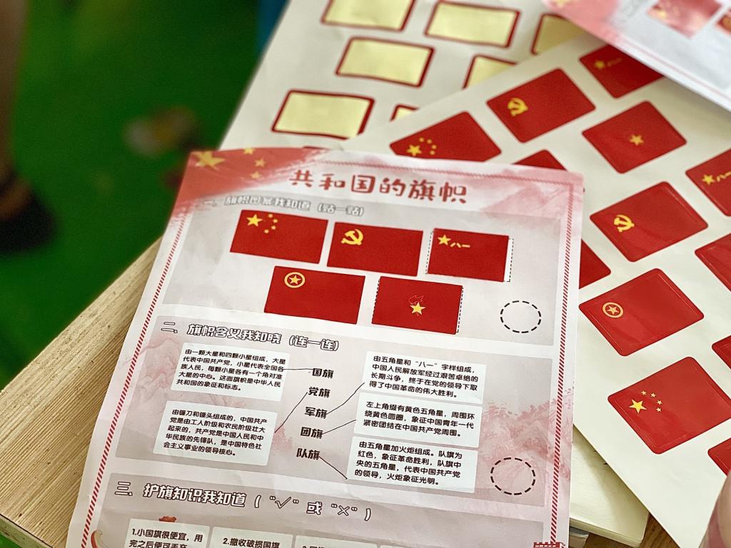 每一个红色旗帜背后都有着令人敬佩的红色故事,都有着不同的意义,代表着坚韧不屈的精神。在志愿者老师的详细讲解,耐心解答下,同学们争先恐后表明决心:“我要向他们学习!我也要为国家做贡献。”爱国之心悄然萌生,少年与国旗的羁绊也在逐渐加深。