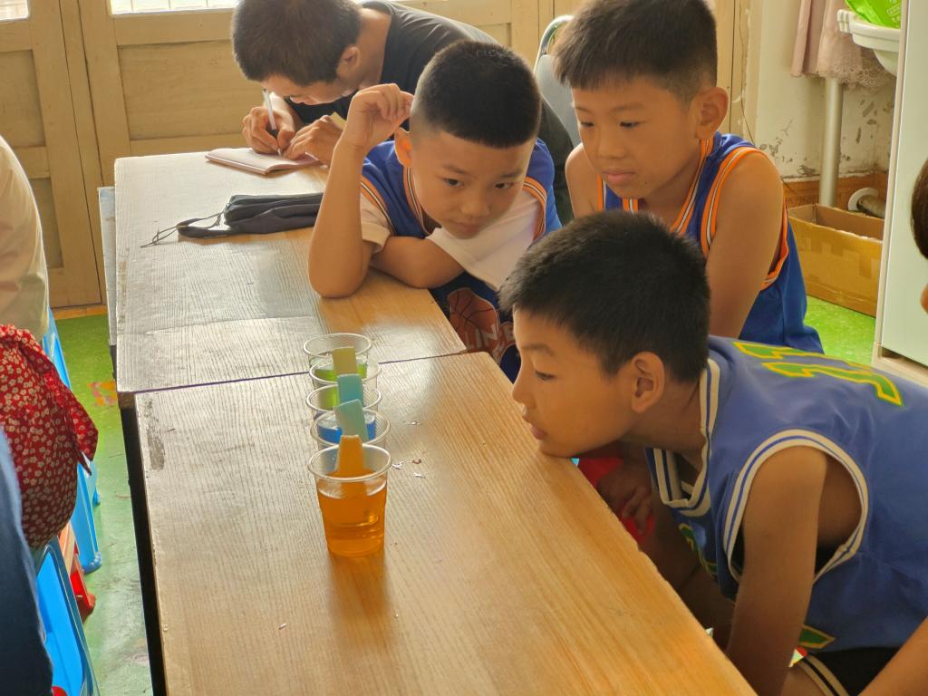 “谁偷走了我的时间?”,“毛细现象”是什么?在志愿者的引导下,孩子们亲自动手探索,好奇心和探索欲愈发高涨,实验进行得如火如荼,人生道理也有所感悟,他们各抒己见,群情激昂。