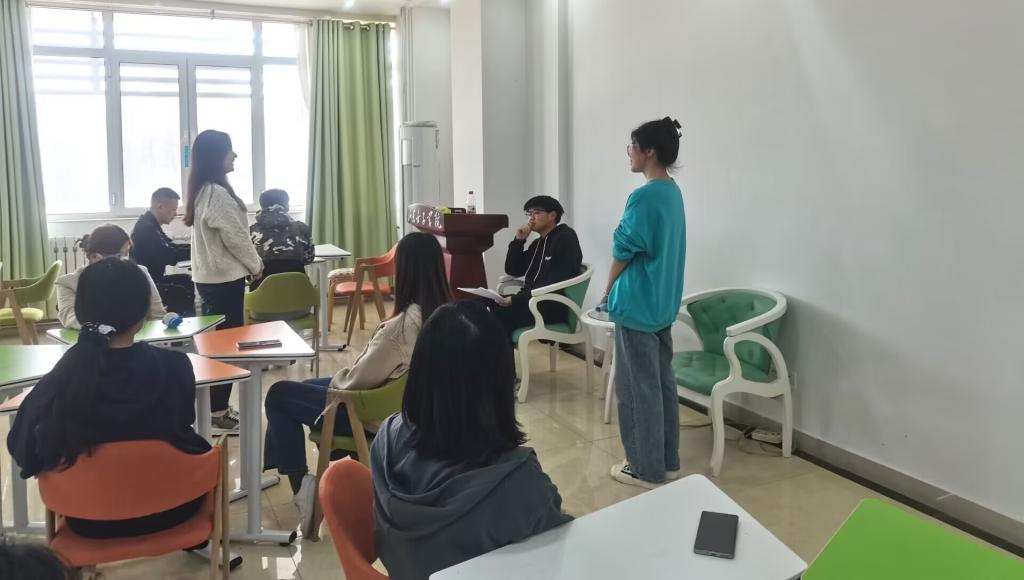 活动开场围绕“大学生怎样实现就业”“选择什么样的就业岗位”等话题,在场同学积极展开讨论。在讨论过程中,有同学提到就业、考研、考公的选择问题,主持人用身边同学的考研艰辛历程和考公、就业准备过程,为大家普及了相关知识,启发大家思考,进而做出适合自己的选择。