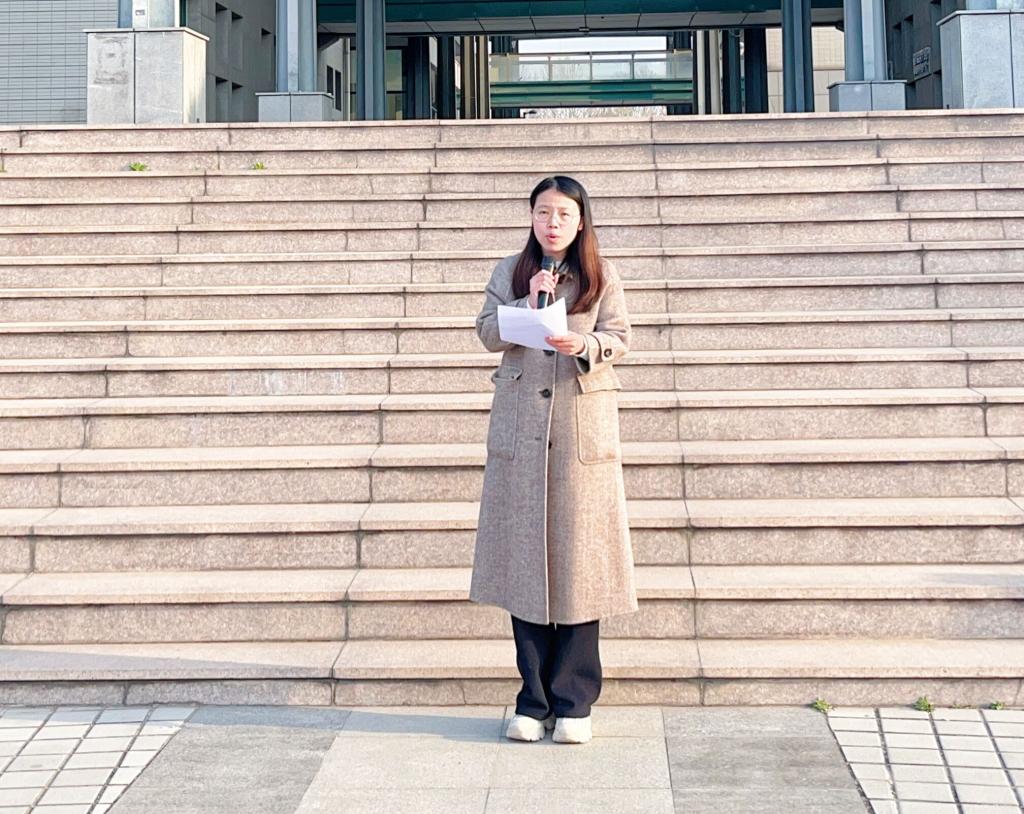 在主题教育环节,22级的5名优秀学生代表带来朗诵《礼赞二十大,筑梦新征程》,带领同学们回顾新时代十年的伟大变革,展望新时代新征程的美好愿景,用饱满的热情和真挚的感情抒发了对党和国家的热爱与赞美。