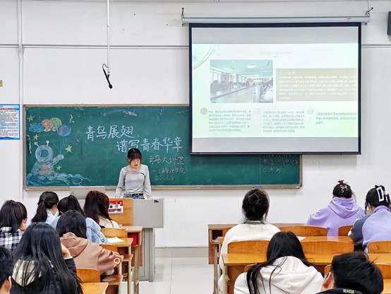 寒假期间,青鸟归巢,心系桑梓献爱心,助力家乡创辉煌。3月8日,我院开展了以“青鸟展翅,谱写青春华章”为主题的“青鸟大讲堂”活动,邀请寒假社会实践中表现优秀的同学做经验分享,鼓励同学们深入基层一线,服务家乡人民,用青春的智慧和汗水建设更加美好的家乡。