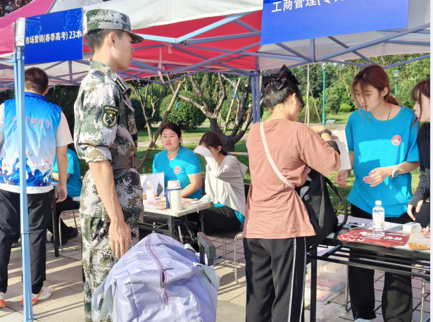 退伍不褪色,迎新我担当。退役大学生志愿者们将满腔的热情化为细心周到的服务,让新生们感受到了工商管理学院大家庭的温暖与力量,成为工商管理学院迎新队伍中一道靓丽的风景线。