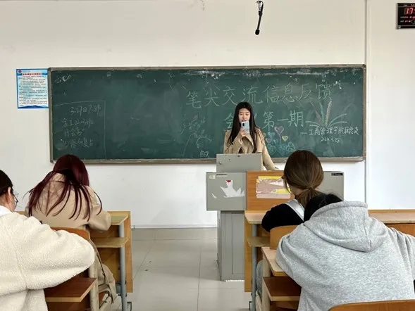 为进一步做好学院信息反馈工作,有效促进生活教学质量不断提高,2024年3月28日下午,工商管理学院于博学楼108召开2023-2024学年第二学期笔尖交流信息反馈会议第一期,会议由学院信息员许敏主持,各班级信息员参会。