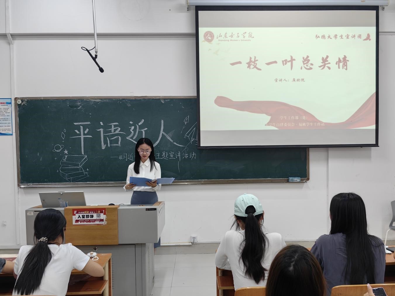 宣讲员廉欣悦在为民篇的宣讲中,以“一枝一叶总关情”为主线,通过层层剖析“什么是为民”、“为何要为民”及“如何为民”,深刻阐述了人民至上的核心理念,激发学生们树立正确价值观,积极投身到服务人民的伟大实践中。