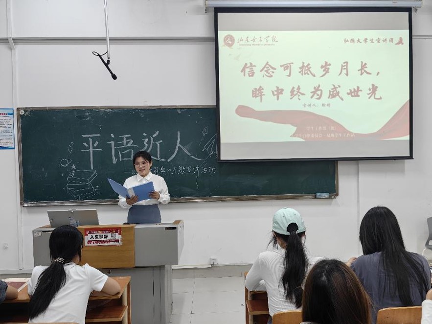 宣讲员徐晴以信念篇为核心,围绕“信念可抵岁月长,眸中终为盛世光”的主题,借电影《三大队》中程兵的感人故事,生动展示了信念的强大力量,激励同学们坚持理想,不畏风雨,勇往直前。
