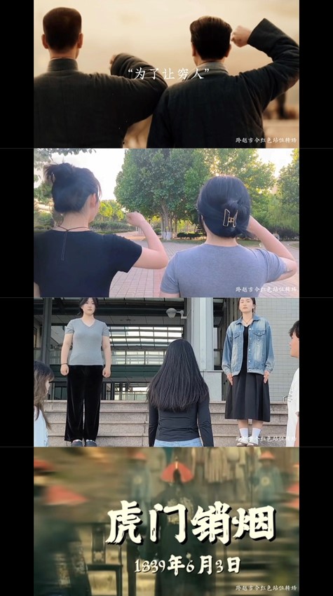 此次活动,同学们精选众多中国近代革命历史中的经典场景,这些短视频不仅让人感受到了中国近代革命历史的震撼与伟大,还让我们穿越时空,回到了那段激情燃烧的岁月。画面缓缓推进,露出同学们青涩却坚定的面庞;历史的尘埃被轻轻拂去,英雄的身影从未远离。经典站位的重现,情感连接过去与现在,这是年轻人另一种爱国方式。