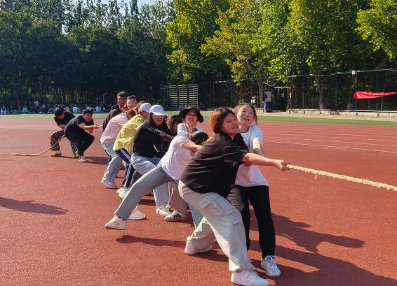 中秋节期间,工商管理学院与音乐学院于田径场开展“绳彩飞扬,团队争霸”拔河比赛,现场气氛紧张热烈,两队之间蓄势待发,同学们脸上写满坚定与决心。这不仅仅是一场体力的较量,更是一次学院团队精神的展现,让同学们感受到团结的力量,体会到奋斗的乐趣。