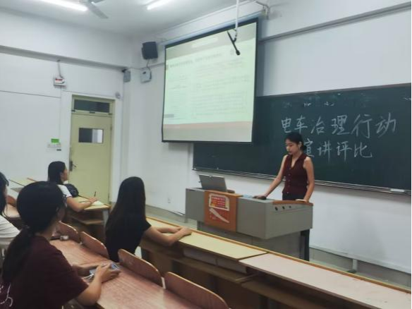 为配合学校电动车综合治理工作,维护良好的校园交通秩序,预防电动自行车引发的交通安全事故、消防安全事故的发生,9月18日,工商管理学院组织学院纪检安全委员举行电动车专项治理宣讲选拔,最终选出三位纪检安全委员面向工商管理学院所有班级进行宣讲。