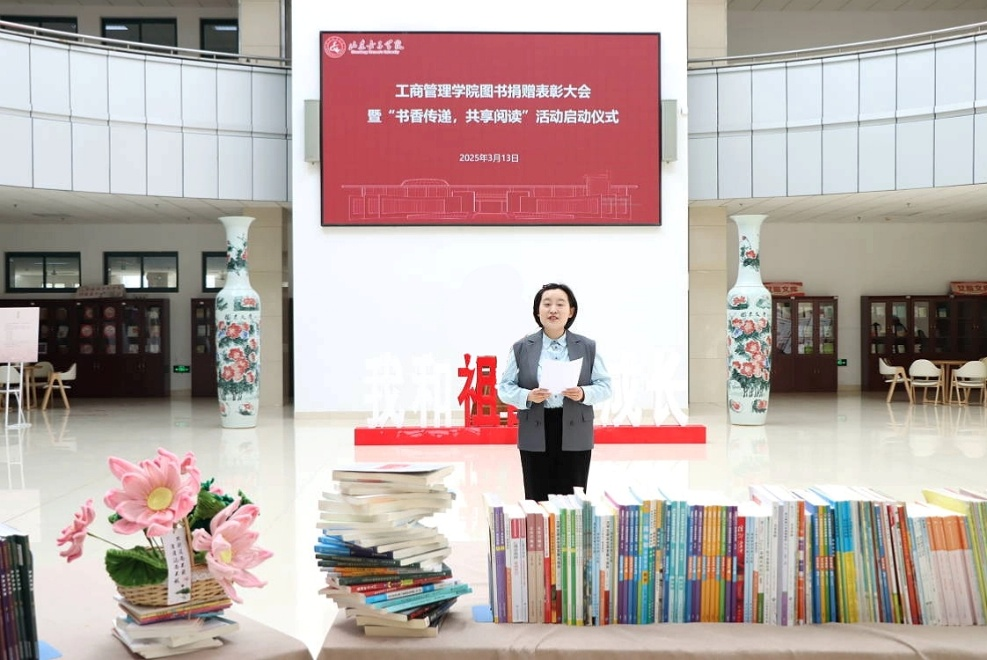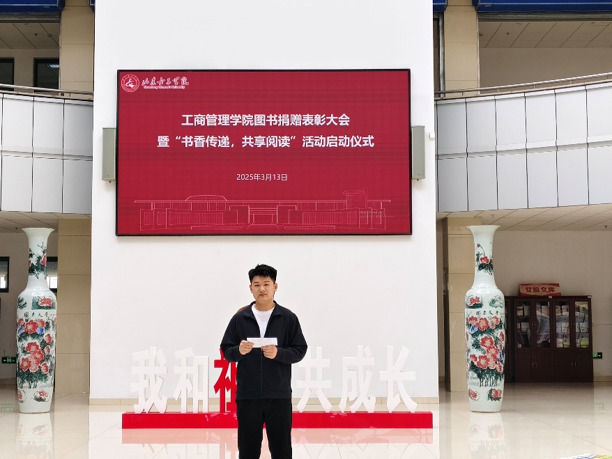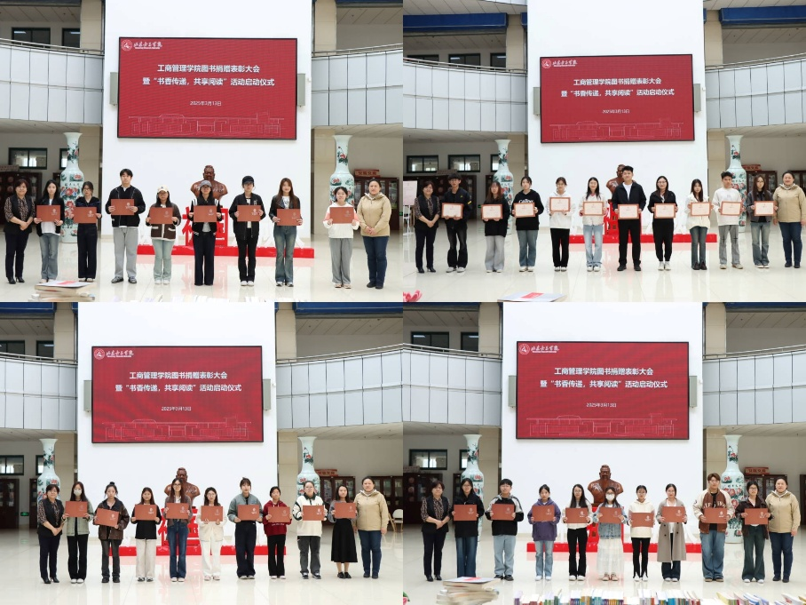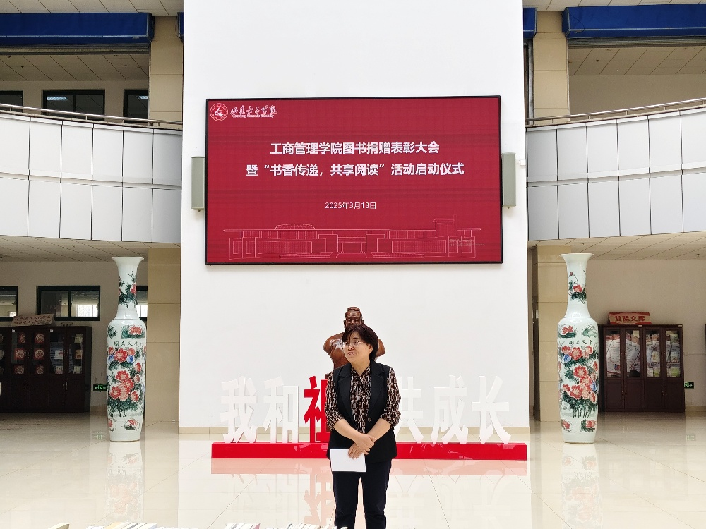 书香满园,智韵传新。3月13日下午,工商管理学院图书捐赠表彰大会暨“书香传递·共享阅读”活动启动仪式在图书馆大厅举行。图书馆馆长成曙霞、工商管理学院党委书记耿华、工商管理学院党委副书记杨晓斐及工商管理学院师生代表参加此次活动。
