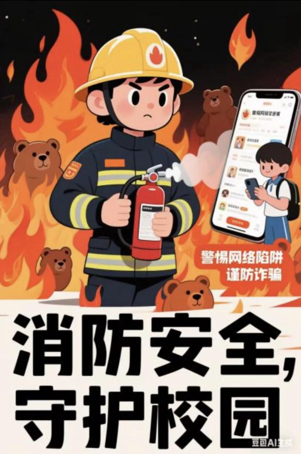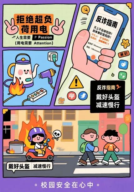 此次活动采用线上参与模式围绕防溺水、消防安全、网络安全、反诈等校园安全相关内容,借助AI软件发挥创意,描绘校园安全场景、科普安全知识、设置安全警示。