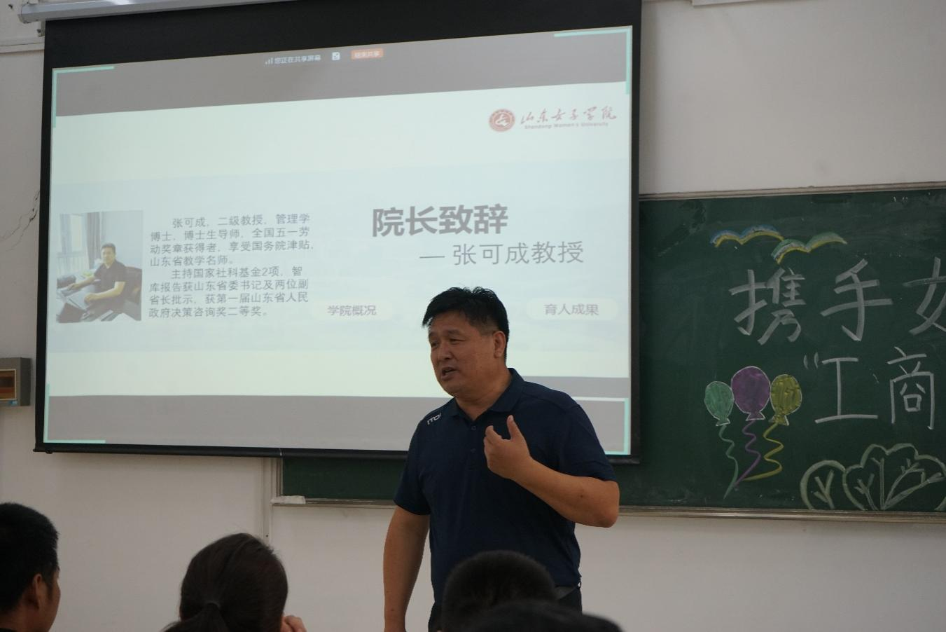 为搭建家校沟通桥梁,凝聚育人合力,帮助新生家长全面了解学院办学理念与育人体系,9月9日下午,工商管理学院通过线上、线下相结合的方式,成功举办“携手女院,‘工’商未来”2025级新生家长会。工商管理学院党委书记耿华、院长张可成、党委副书记杨晓斐、各专业教研室负责人,以及2025级新生辅导员齐聚一堂,与家长共同探讨学生成长成才之路。本次2025级新生家长会由耿华主持。