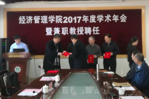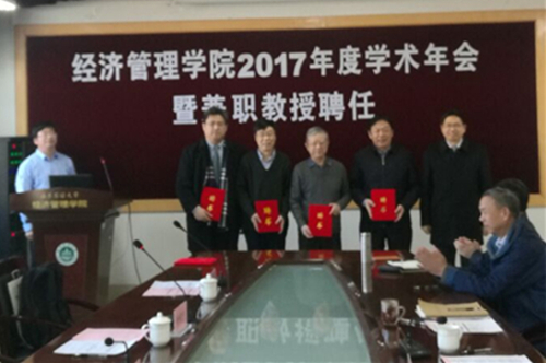 2018年1月11日上午,山东农业大学经济管理学院在文理大楼举行了2017年度学术年会暨兼职教授聘任仪式,会议由山东农业大学经济管理学院院长陈盛伟教授主持,山东农业大学校长张宪省教授到会讲话,并颁发聘书。我校工商管理学院院长张可成教授参加了受聘仪式,被聘为兼职教授。