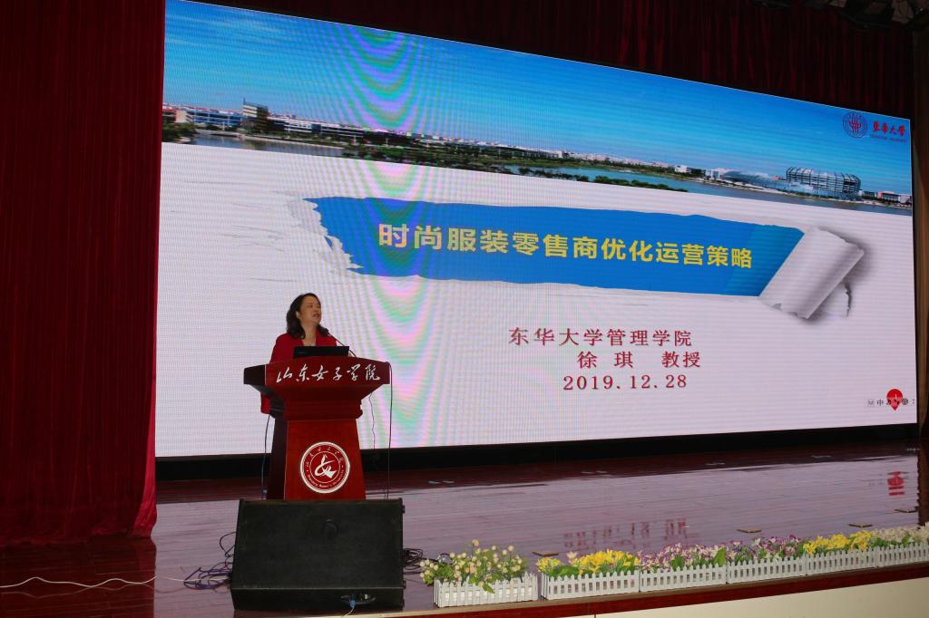 徐琪做了《时尚服装零售商优化运营策略》的报告,徐教授从考虑体验服务的时尚供应链O2O运营优化策略、体验服务下服装零售商库存与定价优化决策和时尚度影响下的服装零售商动态定价策略等方面,运用数学模型阐述了相关问题。