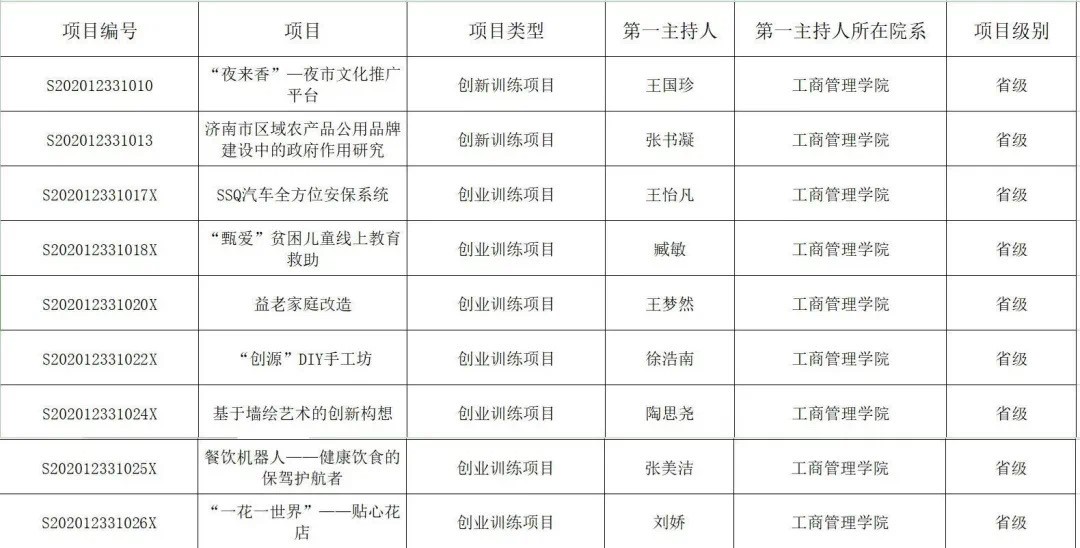 金秋十月,秋风送爽,秋天是收获的季节。根据《关于公布2020年国家级、省级大学生创新创业训练计划项目名单的通知》,我院学子在2020年大学生创新创业训练计划项目中获批国家级立项3项,省级立项9项,校级立项2项,成绩喜人。具体获奖名单如下: