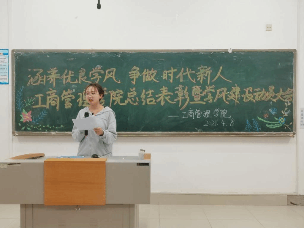 为加强学风建设,不断激发学生学习的积极性和主动性,全面推动“五高三低两杜绝”学风建设目标体系的有效落地和常态化实施,我院特组织开展2020年总结表彰暨2021年学风建设动员大会。此次大会由工商管理学院辅导员孔圆圆主持,我院党总支书记田莉春、教学副院长秦善勇及部分学生代表参加了此次活动。