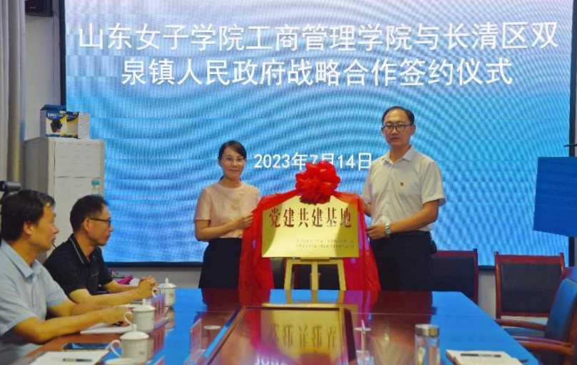 7月14日,工商管理学院与长清区双泉镇人民政府举行战略合作签约暨校地合作共建基地揭牌仪式。学校副校长刘恩允、双泉镇党委书记刘伟、镇长滕桂林出席揭牌仪式,工商管理学院党委书记王兴盈,党委副书记、院长张可成,副院长秦善勇,双泉镇副镇长李想、高庄村党支部书记贾波及学校工商管理学院部分教职工代表参加仪式。