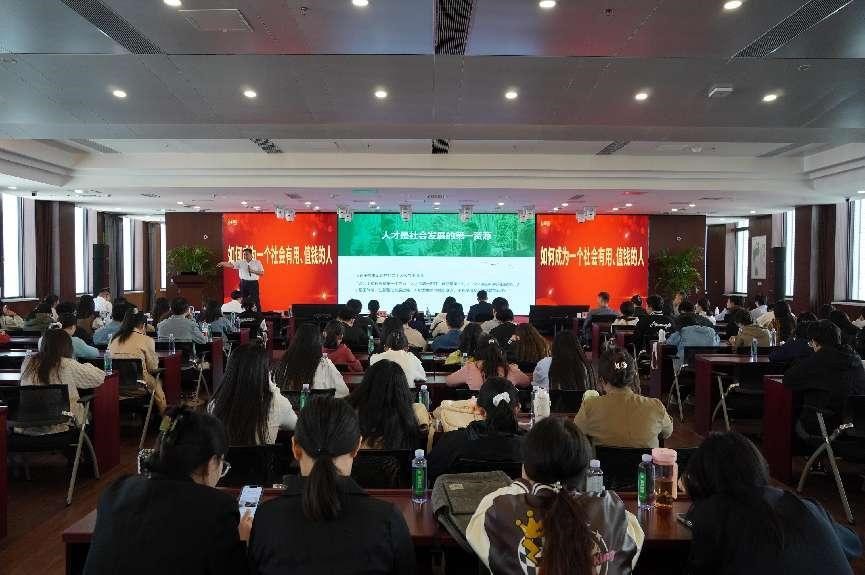 签约仪式结束后,吕和武书记以《如何成为一个对社会有用、值钱的人》为题,为学生进行专题讲座。此次讲座是工商管理学院人才培养的又一创新模式,目的是解决学生“学管理而不知企业”的现实困境。学生深入企业参观考察,并由企业家或者企业高管为学生进行专题讲座。