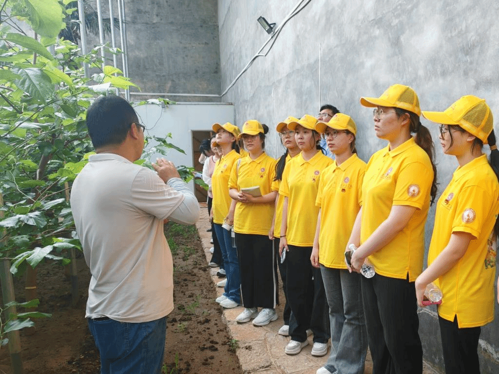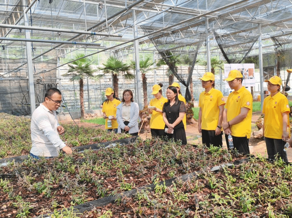 启动仪式结束后,萤火荣光志愿服务队跟随工商管理学院青年创新团队和高庄村驻村书记贾波深入长清区神秀谷田园综合体中药特色示范园区进行实地调研。双泉镇党委副书记孔凡英介绍了神秀谷的整体规划、发展思路、建设进展和中医药产业链发展情况。在示范园区,参加调研的老师学生了解了铁皮石斛的培育方法、药用价值及台湾长果桑的产品形式、销售渠道等相关情况。