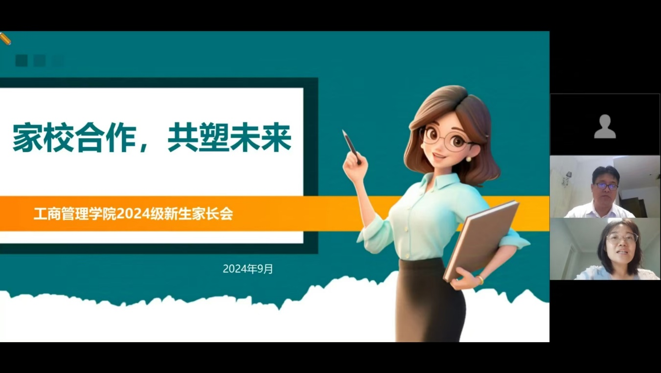 为加强家校之间的沟通合作,共同促进学生的全面发展,9月1日晚,工商管理学院于线上召开“家校合作,共塑未来”——2024级新生家长会。会议由工商管理学院党委副书记刘瑶青主持,院长张可成、副院长秦善勇、学校国际交流合作处处长李云鹏、新生辅导员老师孔圆圆、戴爻及全体新生家长参与会议。
