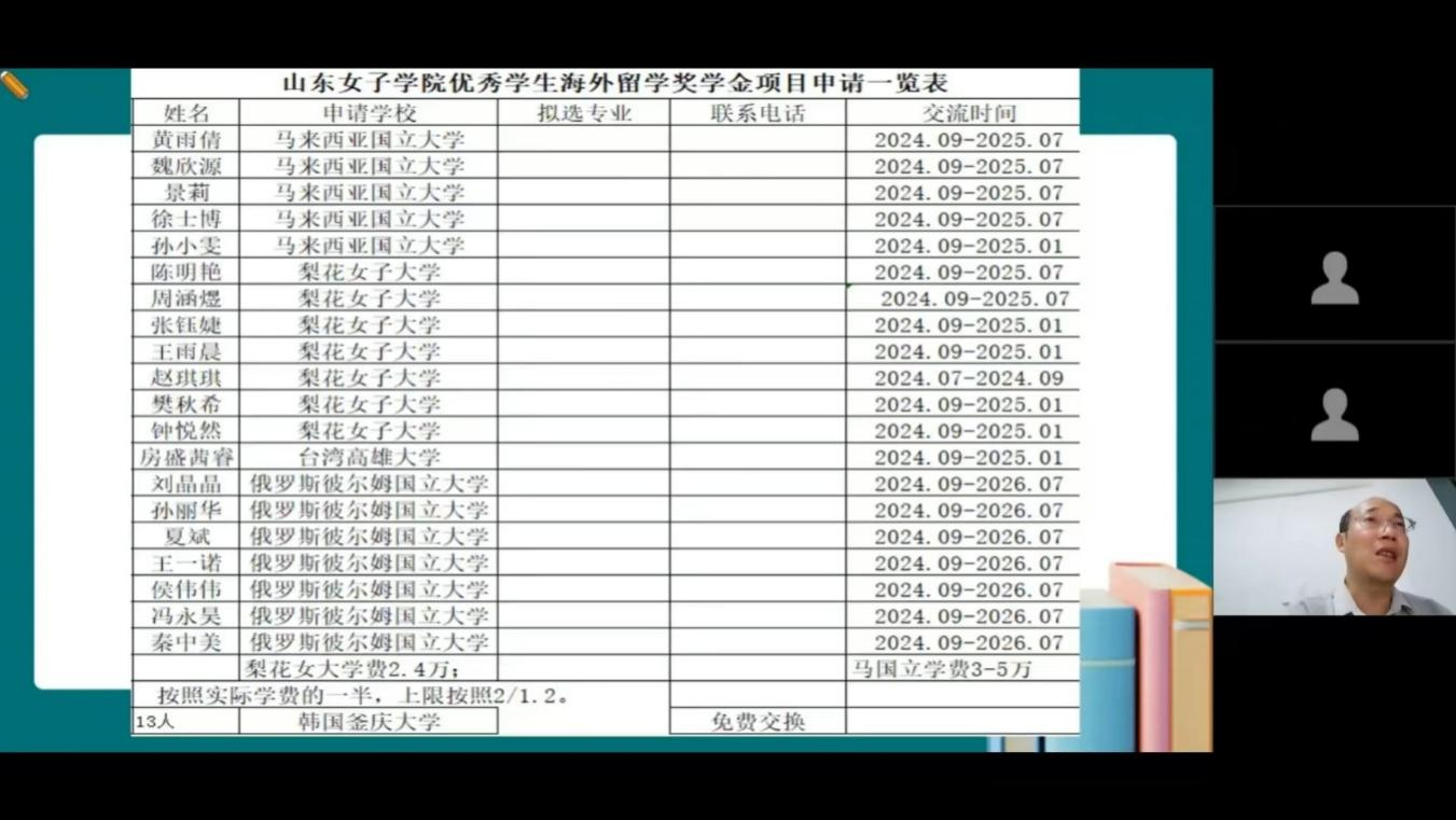 学校国际交流合作处李云鹏处长为学生家长进行了对外交流合作项目的细致讲解,展示了我国出国留学人员情况统计、山东女子学院与国(境)外高校主要学生合作项目、山东女子学院优秀学生海外留学奖学金项目申请一览表等数据,通过政策引领,展现学校开放式办学理念与多元化人才培养体系。
