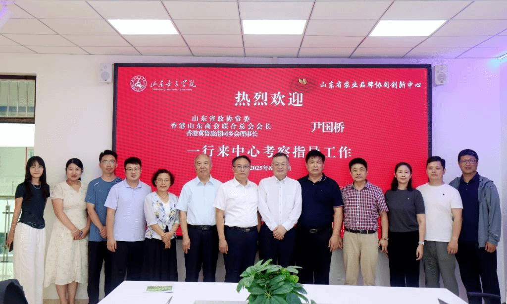 8月18日下午,香港山东商会联合总会会长尹国桥率代表团参观山东省农业品牌协同创新中心品牌建设模拟实验室。学校党委副书记龙希利,党委委员、统战部部长李君,协同创新中心主任、工商管理学院院长张可成等相关人员参加座谈交流。