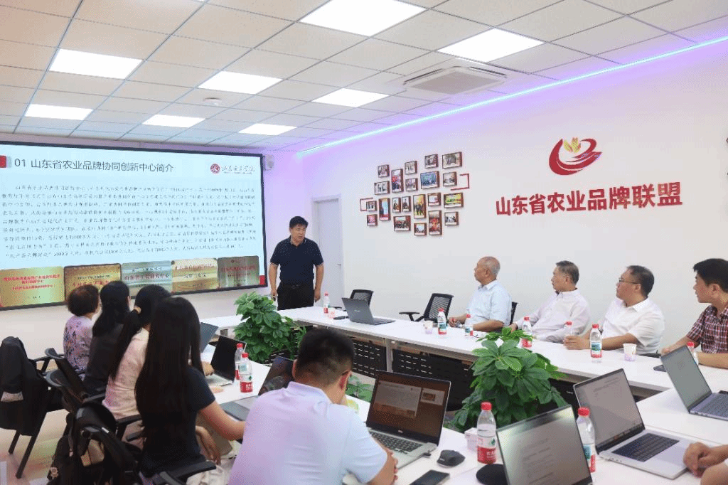 中心主任张可成从三个方面作了专题汇报:首先介绍了协同创新中心的成立背景与功能定位,重点阐述了中心在推动山东农业品牌建设方面的重要作用;其次展示了中心服务全省农业品牌的典型案例;最后详细介绍了中心可提供的品牌咨询、产业规划、专业培训等系列服务项目。