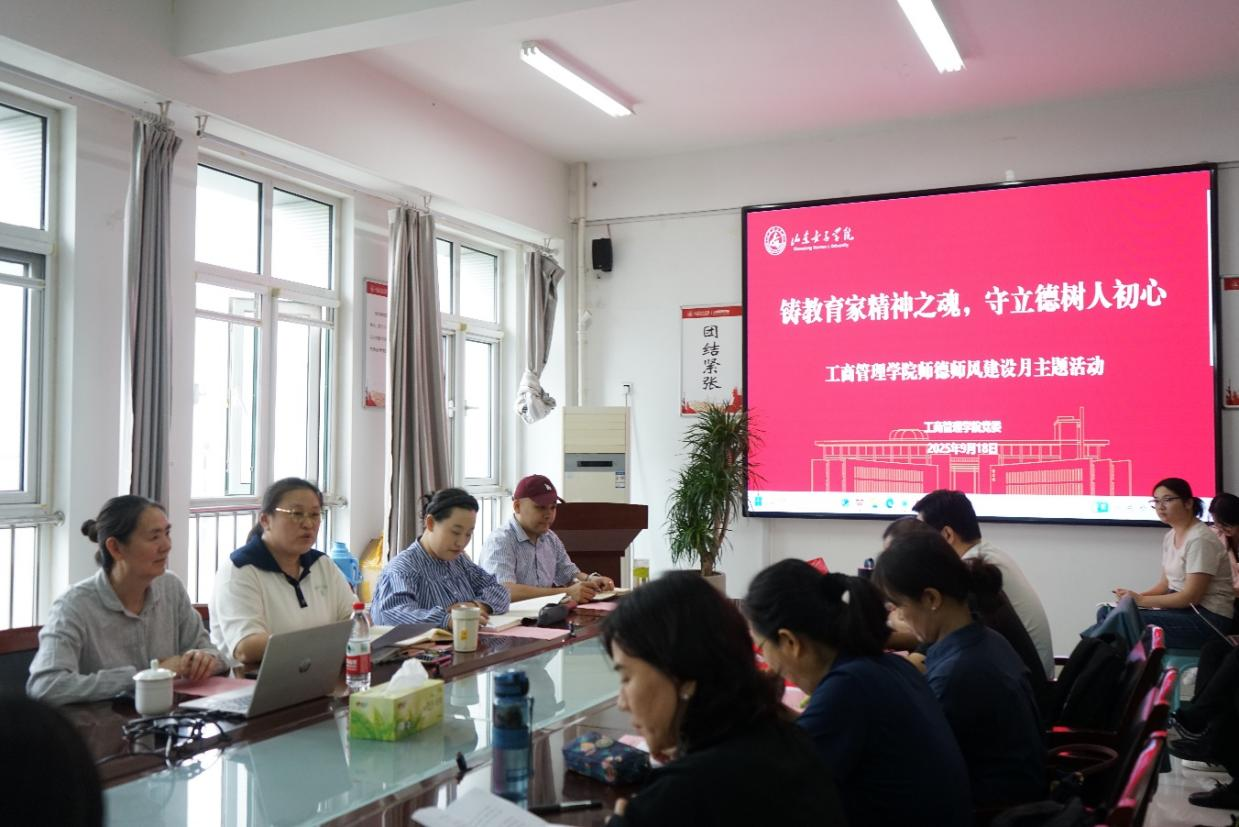 为深入贯彻落实习近平总书记关于教育的重要论述精神,扎实推进师德师风建设,9月18日下午,工商管理学院在博雅楼A401会议室举办“铸教育家精神之魂,守立德树人初心”师德师风建设月主题活动,活动由学院党委书记耿华主持,学院全体教师参加。