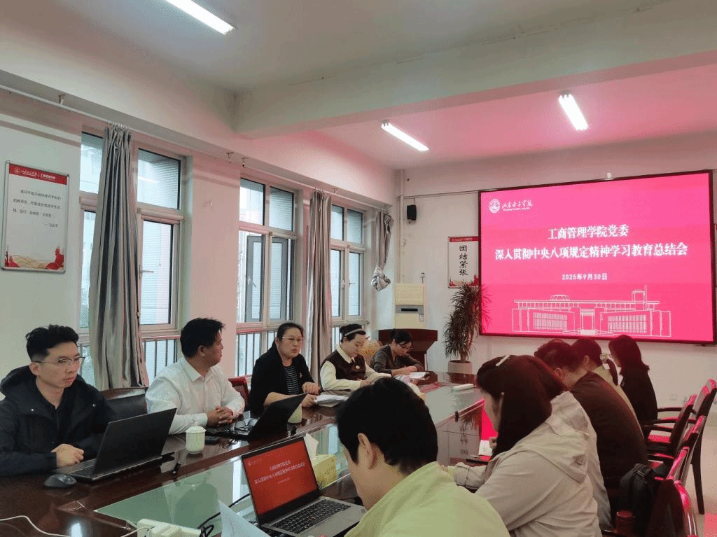 2025年9月30日,工商管理学院于博雅楼A401室组织召开党委(扩大)会议暨深入贯彻中央八项规定精神学习教育总结会议。会议由党委书记耿华主持。学院党委委员、各党支部书记参加会议。