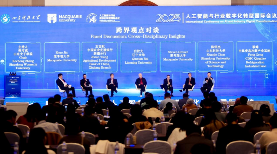 工商管理学院院长张可成教授带队参加,并主持了“跨界观点对谈”环节。此环节中,“中国金融学科终身成就奖”获得者、“中国金融研究杰出贡献奖”获得者、辽宁大学教授白钦先,大会副主席、麦考瑞大学管理系主任Steven Grover,中国农业发展银行新疆分行党委委员、副行长王吉献等学界、业界的多位专家从金融、管理等多元视角出发,围绕人工智能赋能、多学科交叉、行业数字化转型带来的机遇与挑战等进行了富有建设性的思想碰撞与前瞻探讨。
