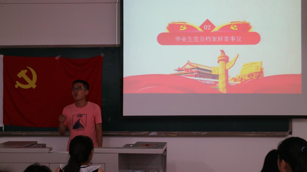 为了对毕业生党员进行再教育,倡导毕业生心怀感恩、文明离校, 6月25日工商管理学院学生党支部在博学楼204召开“忆初心,温誓词,别母校,踏征程”主题党日活动。
