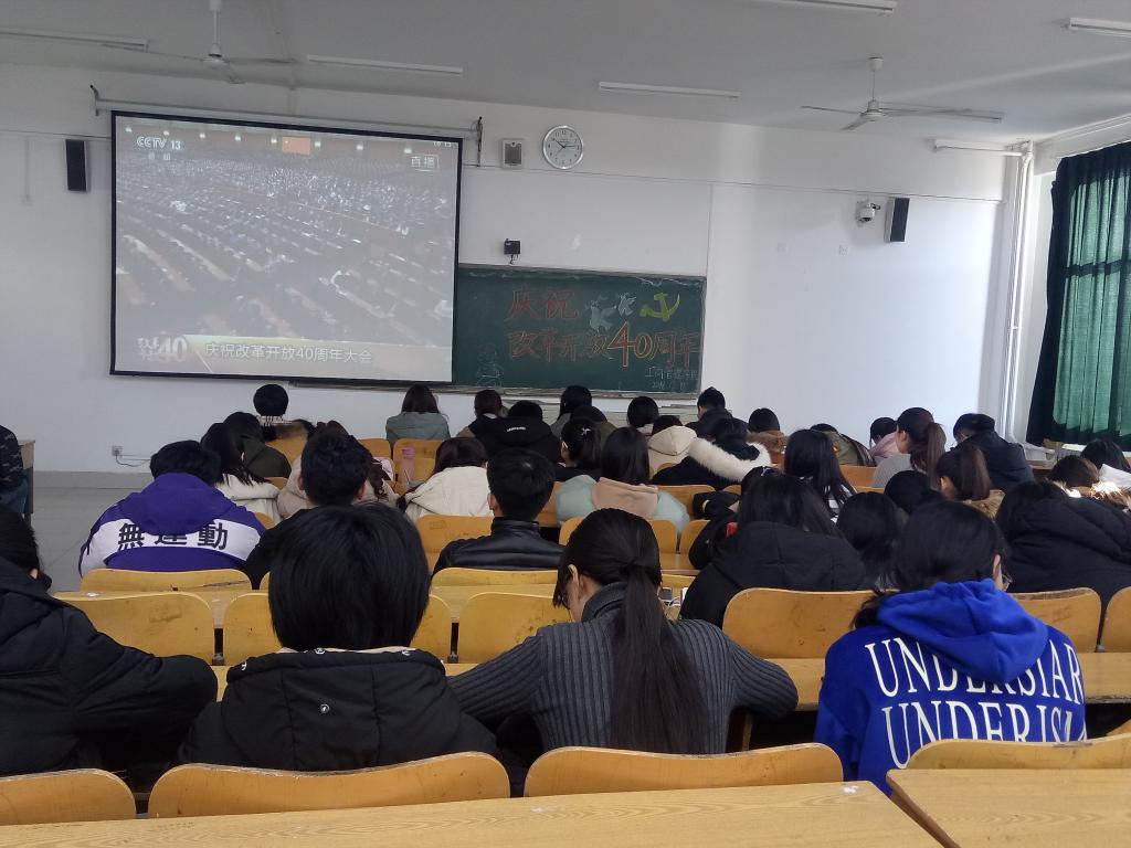 12月18日上午,工商管理学院组织在校部分师生集体收看了纪念改革开放40年庆祝大会,与会的教师和学生认真聆听了习总书记在纪念大会上的重要讲话。习总书记的讲话在我院广大教师和学生引起了热烈反响。