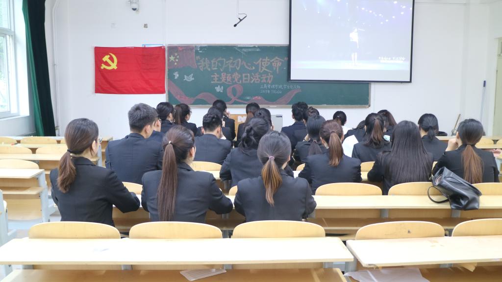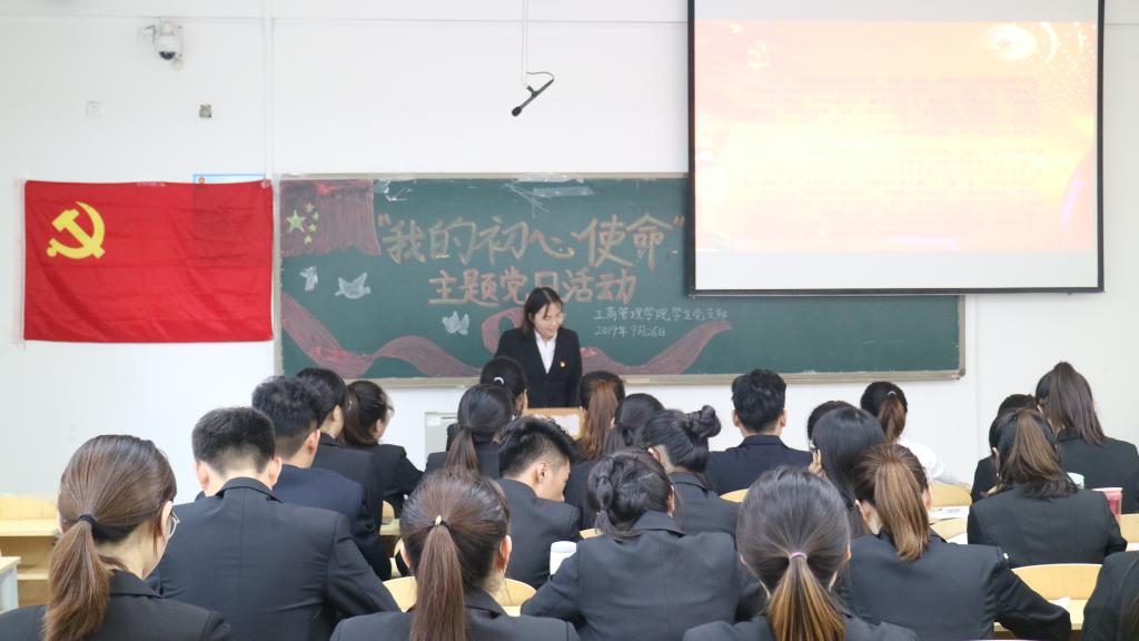 为热烈庆祝新中国成立70周年,深入学习贯彻习近平总书记在“不忘初心、牢记使命”主题教育工作会议上的重要讲话精神,积极响应我校党委关于深入开展“不忘初心、牢记使命”主题教育实施方案的号召,加强对党员的爱国主义、集体主义和社会主义教育,工商管理学院学生党支部于9月26日下午1:50在博学104开展“我的初心使命”主题党日活动,组织我院学生党员开展“四个一”活动。本次活动通过接受革命传统教育,讲述入党故事,回顾建党的历史、再忆党的征程;通过经典诵读、重温入党誓词告诫学生党员不忘入党初心,牢记党员使命。工商管理学院学生党支部全体党员参加本次活动。