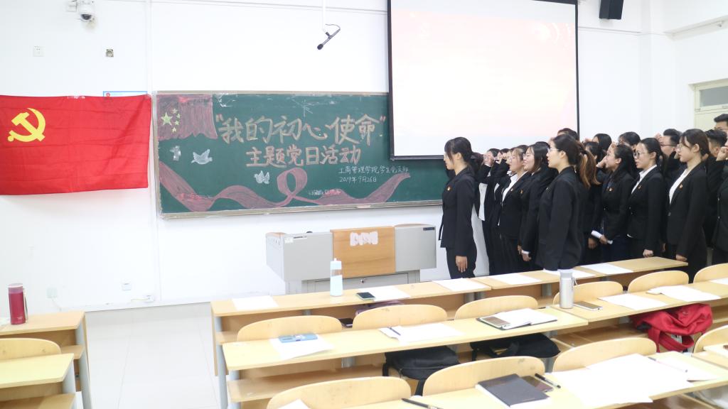 活动进行最后一项,重温入党誓词。“我志愿加入中国共产党,拥护党的纲领,遵守党的章程……”庄严神圣的入党誓词让学生党员更进一步坚定自己的初心,牢记自己的使命,并立志为之付出奋斗终身的行动。
