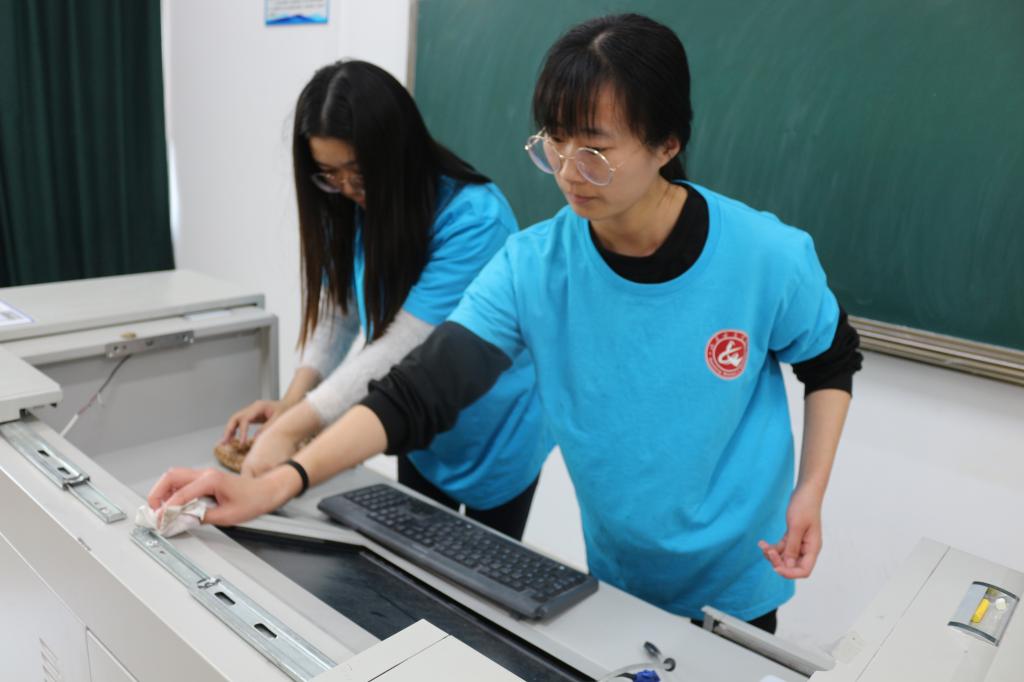 下午1点半,发展对象对博文楼、博学楼所有教室的黑板、讲台进行清理。他们合理分工,相互协作,秉承着“细心、细致、细微”的原则清理着黑板、黑板槽和讲台,经过一个多小时的劳动,所有教室的黑板、讲台都变得洁净如新。在随后的实践心得交流活动中,发展对象徐梦瑶讲到:“黑板槽的粉笔积尘非常多,清理完粉笔尘往往会塞满指甲缝,清洁过程太不容易了,所以日常卫生的保持尤为重要,我一定会带动身边的同学去维持教室卫生。”发展对象聂睿也表达了自己的想法:“整洁教室,你我共建,要在生活中养成良好卫生习惯,爱护教室环境,同时为营造良好教室环境贡献自己的力量。”结合实践活动,发展对象提出了“整洁教室,你我共建——课前积极擦黑板倡议书”,号召更多的同学加入到维护教室环境的实践中来。