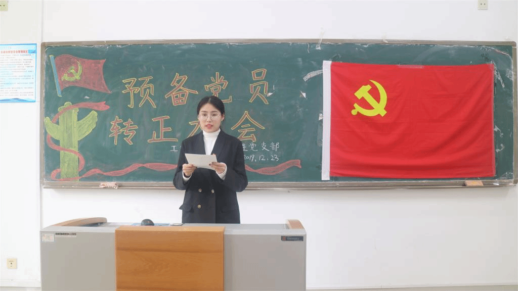 大会按照预备党员转正程序逐个讨论表决。侯晨曦等18位预备党员逐个宣读转正申请书,汇报预备期自己在思想、学习、工作、生活等方面的表现和政治理论学习成果,表明成为中共正式党员的强烈愿望。学生党支部书记孔圆圆同志代表支部委员会向与会人员逐个汇报了18位同志在预备期的教育考察情况。经党员充分讨论、有表决权的正式党员无记名投票,支部大会同意接收18位同志为中共正式党员。侯晨曦等18位同志依次表态将继续学习党的理论知识,不忘初心跟党走,努力改正缺点,立足本职岗位工作实际,为党的工作付出自己的努力,为实现共产主义事业奋斗终生。