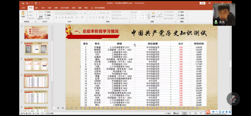 为深入学习贯彻习近平新时代中国特色社会主义思想和党的十九大精神,落实“不忘初心、牢记使命”主题教育长效机制,推进支部党员的思想政治建设,引导广大学生党员更好的知党爱党,牢固树立“四个意识”,增强“四个自信”,做到“两个维护”,依托“学习强国”“灯塔—党建在线”等学习平台以及党支部官方qq群,以集中学习和自主学习相结合的形式,工商管理学院学生党支部实施了“明初心 强党性 跟党走”教育管理方案。5月8日以“学党史、忆初心、铭党恩”为主题开展第一次线上学习研讨交流会,总结第一阶段的学习情况,学生党支部全体学生党员以及入党积极分子代表参加了此次活动。