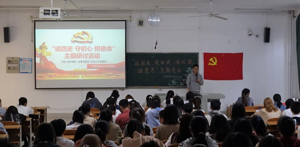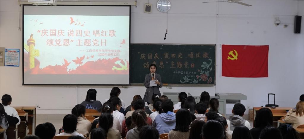 为庆祝中华人民共和国成立71周年,进一步加强学生党员思想道德教育,时刻不忘入党初心,牢记党员使命,工商管理学院学生党支部于10月22日下午举行“庆国庆说四史唱红歌颂党恩”主题党日活动。工商管理学院学生党支部全体党员、部分入党积极分子参加此次活动。