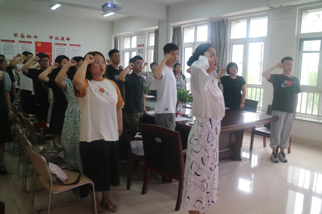 毕业生党员代表刘娇同志带领全体毕业生党员进行宣誓,重温入党誓词,引导毕业生党员牢记共产党人的初心和使命,继续保持和弘扬共产党员的先进性,牢记学院党组织的教育和培养,贯彻使命感、责任感,在以后的工作领域中继续发挥党员价值。