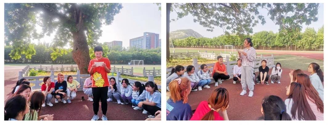 工商管理19本班的心理交流会在操场展开,他们围坐在唐槐树下分享自己近期所发生的故事,互相倾诉和聆听彼此的心事。大家敞开心扉发表自己的困惑和烦心事,同学们帮忙出谋划策、相互答疑、互相安慰,就这样,一桩桩心事在唐槐树下慢慢地解决了。