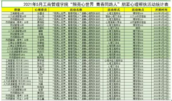 为进一步提高大学生的心理健康素质,营造积极健康的心理文化氛围,工商管理学院在心理健康月成立以班级心理委员为组长,各宿舍心灵天使为成员的心理帮扶小组,并组织开展“照亮心世界,青春同路人”朋辈心理帮扶活动。以增强大学生对心理问题的重视,普及心理健康知识,缓解心理压力和困惑,培育同学们自尊自信、理性平和、积极向上的健康心态。
