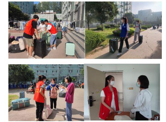 “同学,你好,让我来帮你吧!”他们佩戴党徽,身穿红马甲,带好绶带,接过行李,主动向需要帮助的新生伸出援手。他们一趟又一趟地来回穿梭于校园和宿舍楼层之间,步履匆匆,忙碌的背影让萌新们感受到女院大家庭的温馨。“这里是宿舍楼,那边是图书馆,后边是教学楼群……”接送途中,他们热心介绍校园布局,帮助萌新熟悉陌生环境,消解紧张感。
